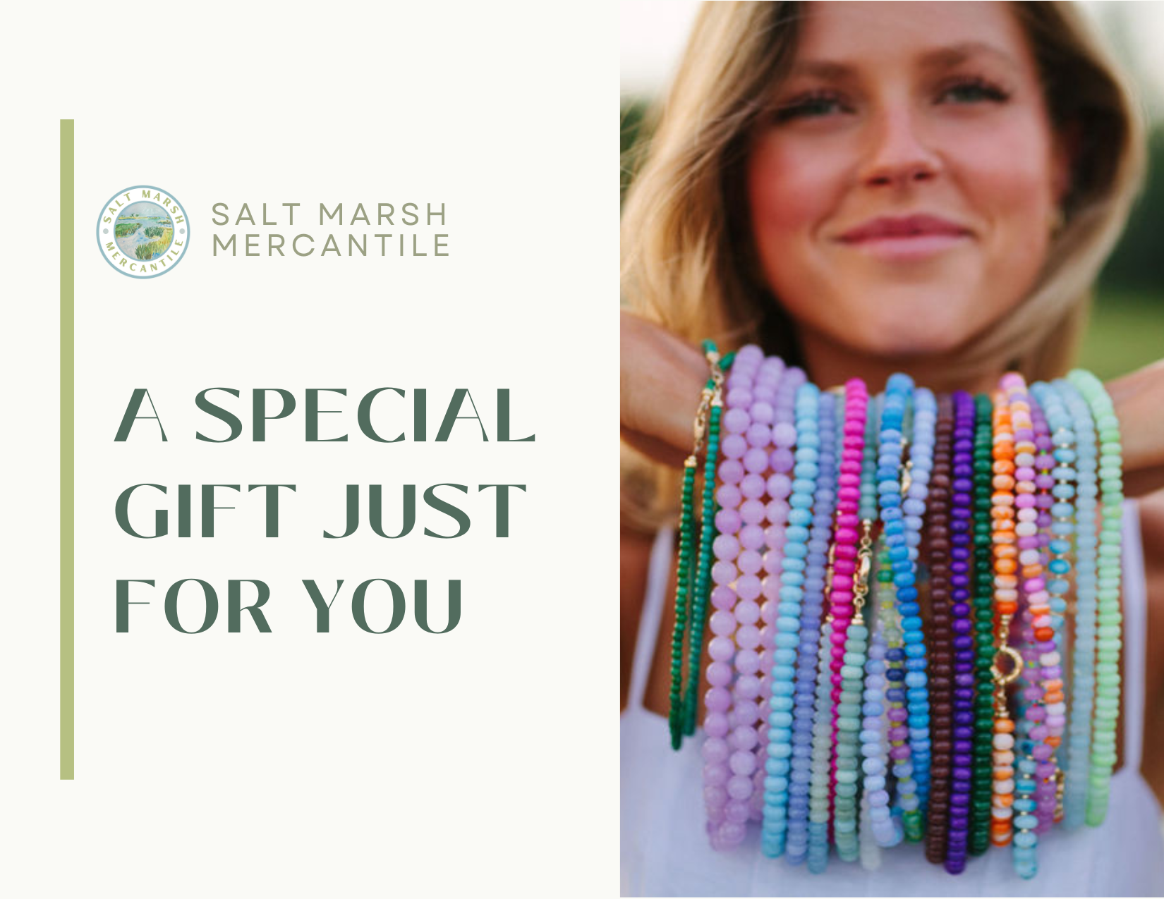 The perfect gift is a Salt Marsh Mercantile gift card! Let your recipient choose their favorite color! They'll think of you every time they wear it!